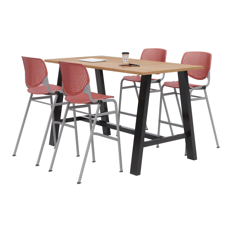 KFI Studios Midtown Bistro Table With 4 Stacking Chairs, 41inH x 36inW x 72inD, Kensington Maple/Coral Orange