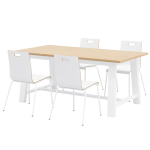 KFI Studios Midtown Dining Table With 4 Chairs, Natural/White Table, White Chairs