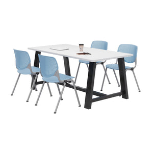 KFI Studios Midtown Table With 4 Stacking Chairs, Designer White/Sky Blue