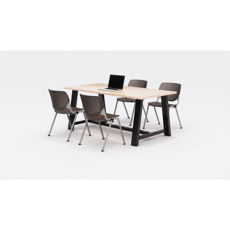 KFI Studios Midtown Table With 4 Stacking Chairs, Kensington Maple/Brownstone