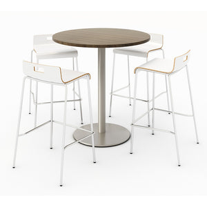 KFI Studios Round Bistro Pedestal Table With 4 Stacking Bar Stools, Studio Teak/Natural