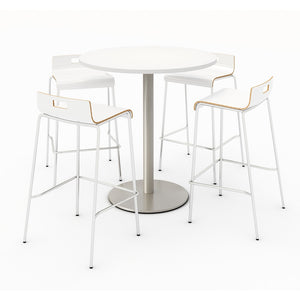 KFI Studios Round Bistro Pedestal Table With 4 Stacking Bar Stools, White