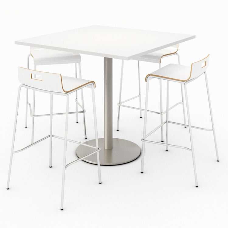 KFI Studios Square Bistro Pedestal Table With 4 Stacking Bar Stools, White