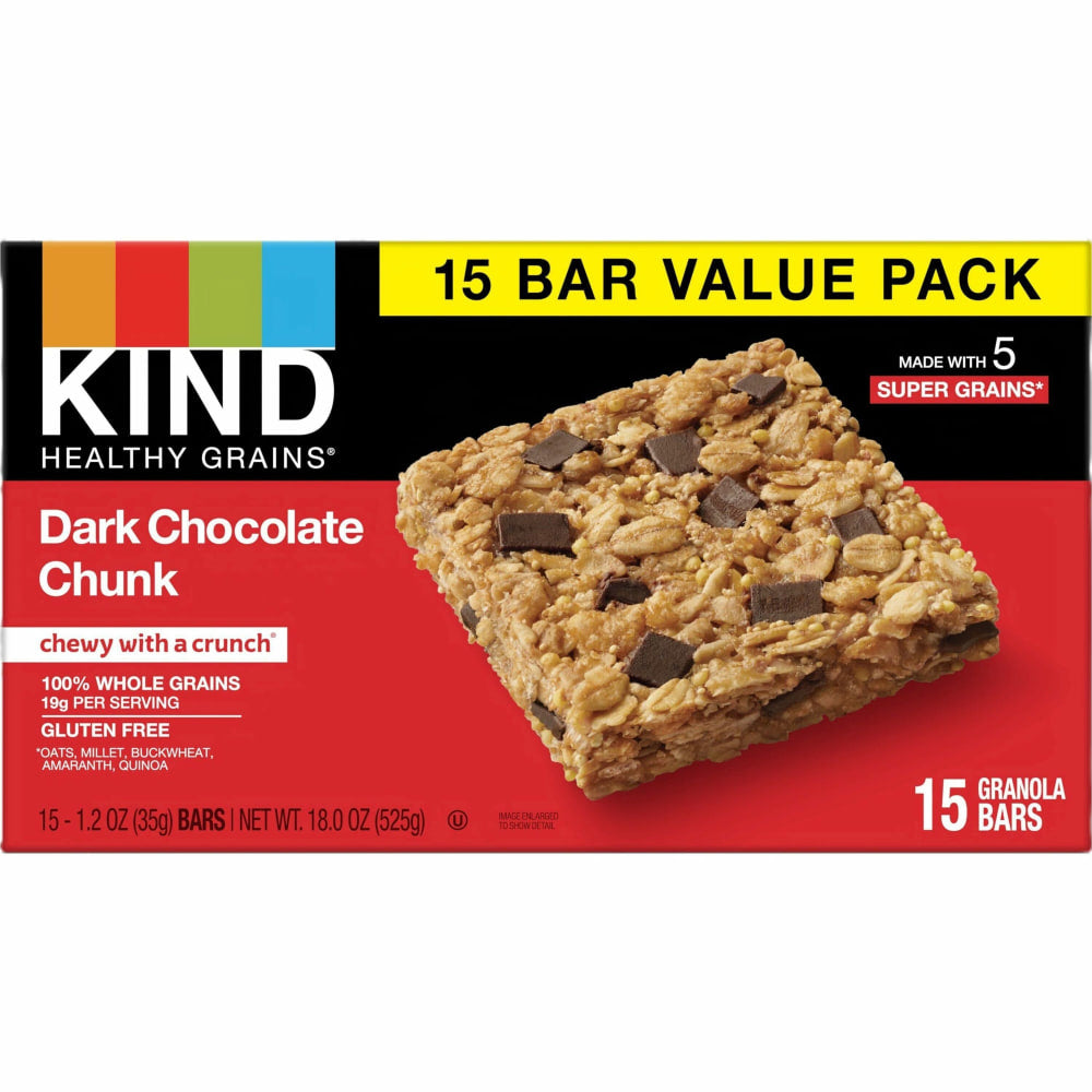 KIND Healthy Grains Bars - Trans Fat Free, Gluten-free, Low Sodium, Cholesterol-free - Dark Chocolate Chunk - 1.20 oz - 15 / Box