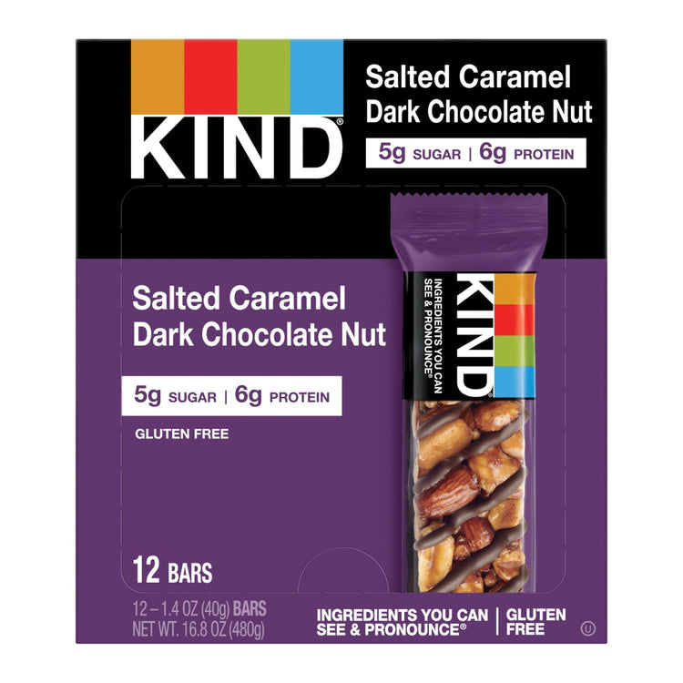 KIND Salted Caramel And Dark Chocolate Nut Bars, 1.4-Oz Bars, Box Of 12 Bars
