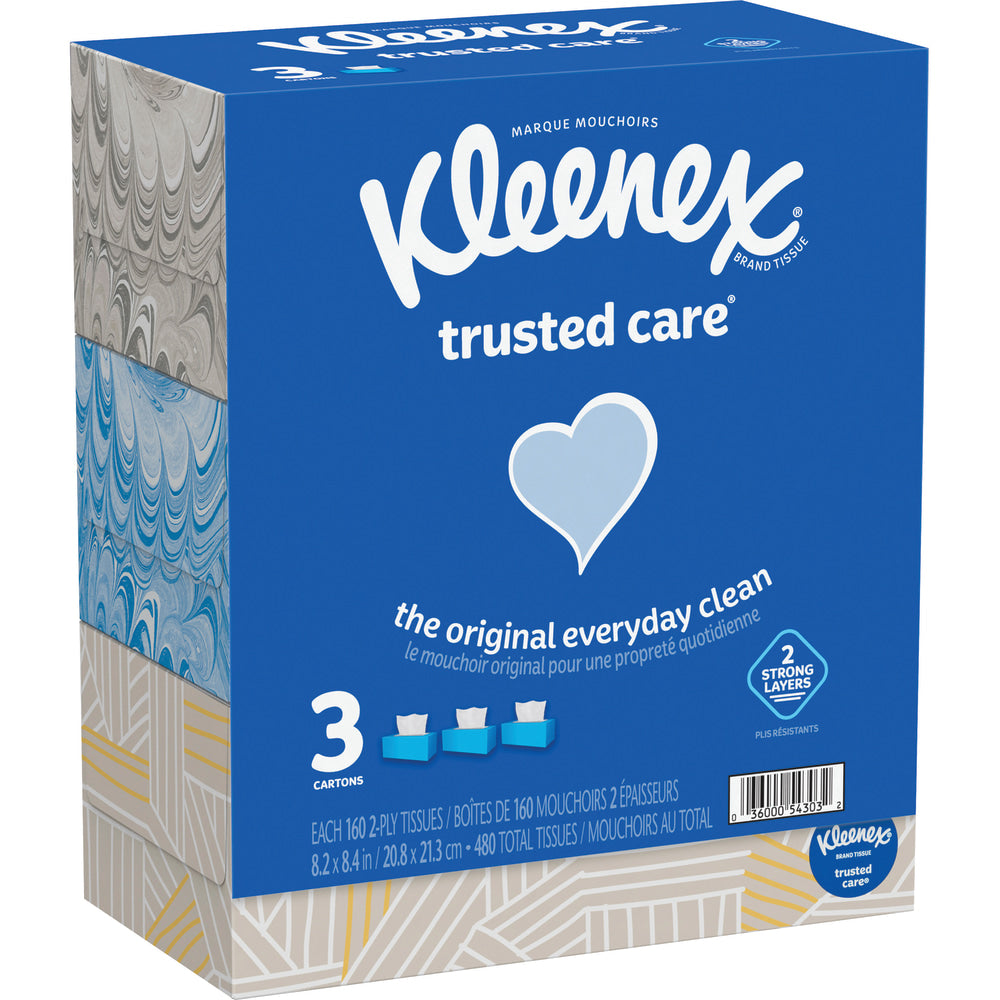 Kleenex Trusted Care 2-Ply Tissues, 8-7/16in x 8-1/2in, White, 160 Tissues Per Box, Pack Of 3 Boxes