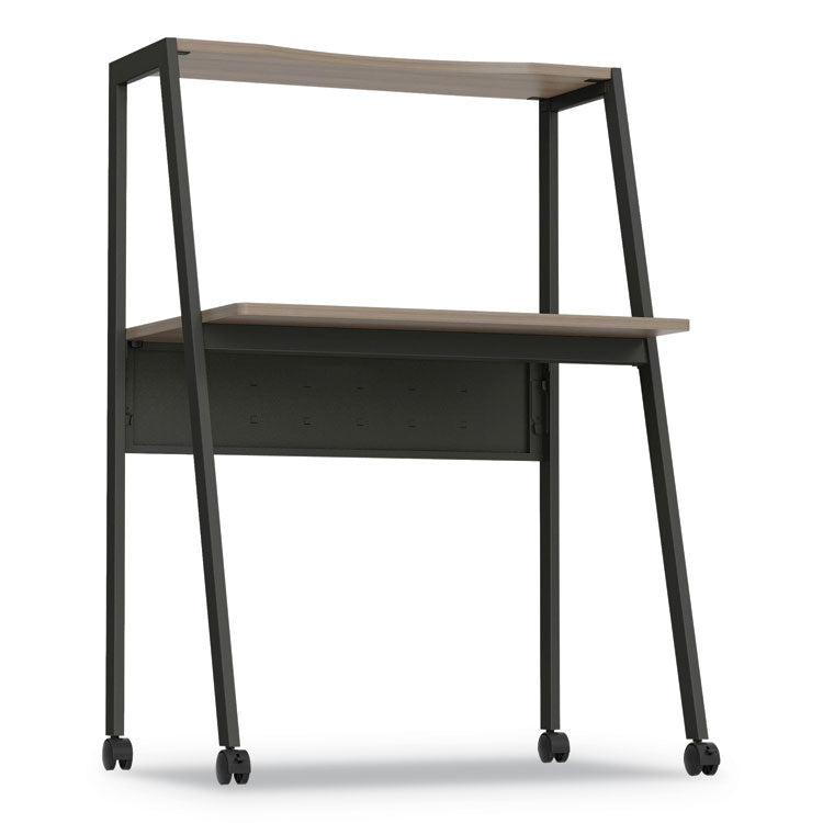 Minimalist two-tier design complements contemporary, modern and traditional decors. Ideal for home offices, dorms, lofts or wherever space is at a premium. Top shelf provides extra storage space. Durable steel frame. Casters for mobility. No tools required for assembly.