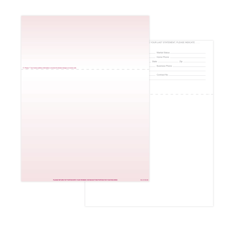 Use the Laser 2-Sided Healthcare Medical Billing Statements to bill your patients for services. The statements are printed on 20-lb white MOCR bond paper and feature change of address/insurance fields on the back to ensure patients can update your practice on their information.