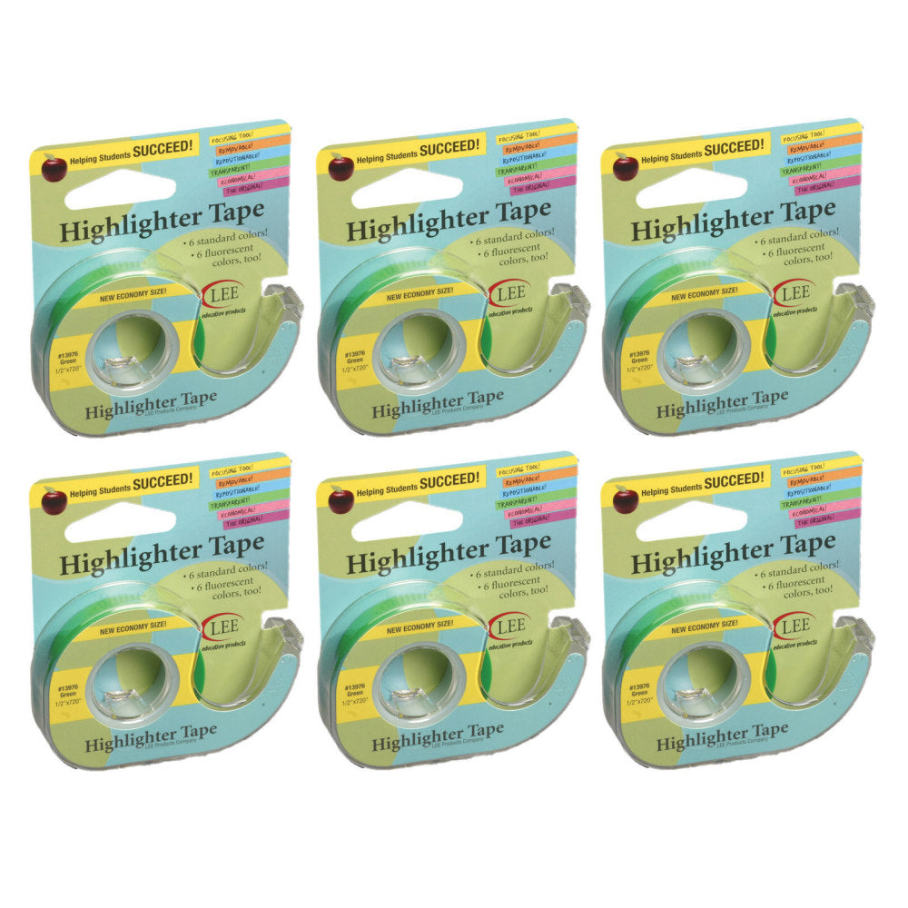 Lee Products Removable Highlighter Tape, 0.5in x 20ft, Green, Pack Of 6