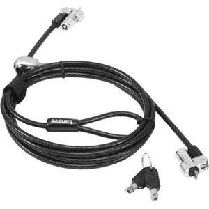 Lenovo NanoSaver Twin Head Cable Lock - Patented T-bar/Key Lock - Black - Carbon Steel, Plastic - 6.56 ft - For Notebook, Desktop Computer, Tablet, Monitor