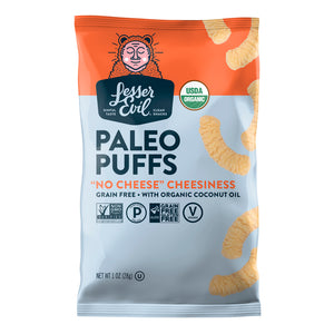 LesserEvil Paleo Puffs, No Cheese Cheesiness, 1 Oz, Pack Of 24 Bags