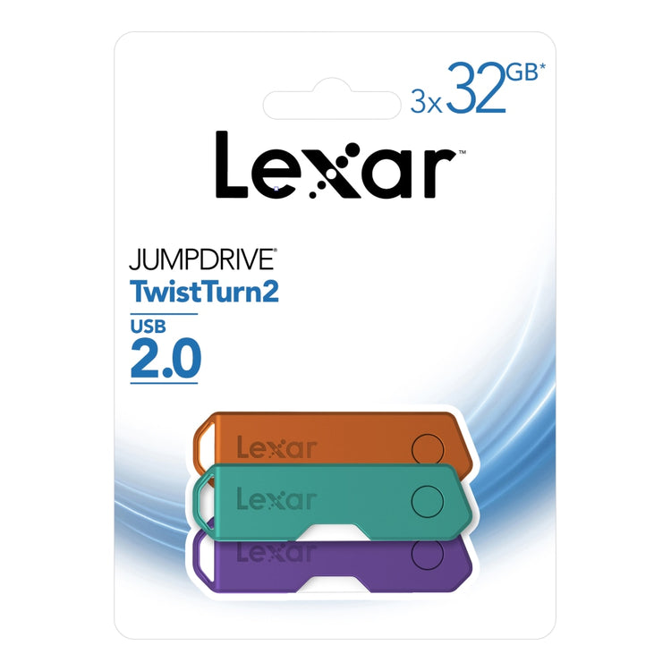 Lexar JumpDrive TwistTurn2 USB 2.0 Flash Drives, 32GB, Pack Of 3 Flash Drives, LJDTT2-32GABNA3