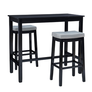 Give your bar area an upgrade with this Linon Walker Faux Leather 3-Piece Bar Set. The set comes with a counter-height table and 2 matching counter stools. The frames are made of solid wood for stability and strength, and the faux leather upholstery adds a smooth texture.