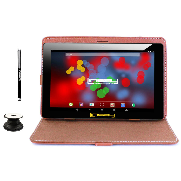 Linsay F10IPS Tablet, 10.1in Screen, 2GB Memory, 64GB Storage, Android 13, Brown