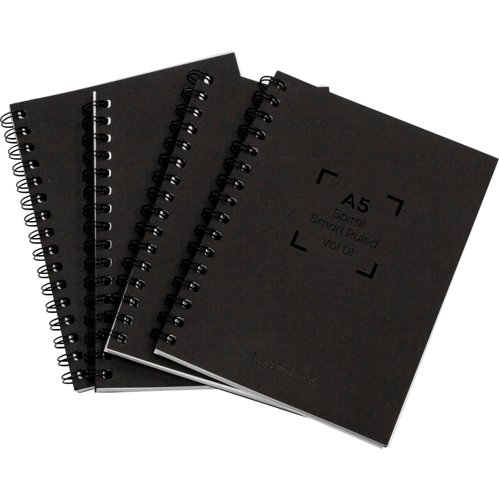 Livescribe A5 Notebooks, 5-7/8in x 8-1/4in, 1 Subject, College Ruled, 80 Sheets, Black, Set Of 4 Notebooks
