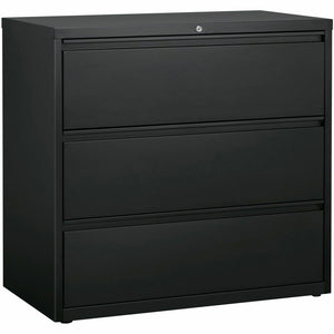 This wide lateral file features three versatile drawers with hanging file rails for side-to-side filing of letter-size, legal-size or A4-size folders.