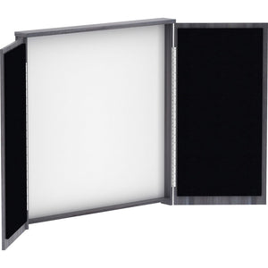 - Concealed, melamine dry-erase surface is there when you need it and hidden when you don't.