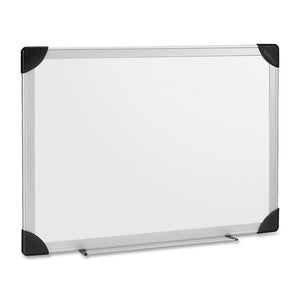 Dry-erase board features a laminated styrene surface and sturdy aluminum frame that withstands years of use. The easy-to-clean surface resists scratching and ghosting. Dry-erase board is easy to mount with a four-corner mounting system.