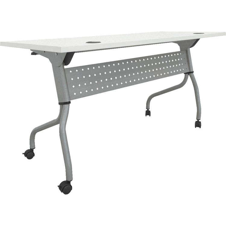 Furnish your training area with Lorell Preference Series 60"W Flip-Top Training Tables. Easy to store and arrange in your space, this rolling work table provides plenty of room to spread out on top and has a metal base with a modesty panel underneath. Create rows by securing multiple folding training tables together using metal connectors (sold separately). The tops will still flip up when connected for simple storage.