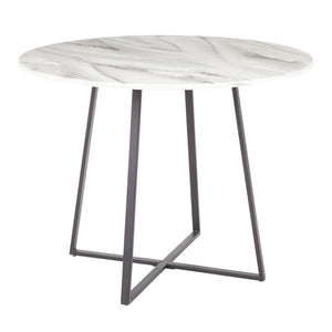 Designed with a uniquely stylish top, the marble-look dining table is sure to stand out in your space. The contemporary dining table offers a geometrical base made of long-lasting metal to handle years of use. The round wood dining table comfortably seats 4, making it great for any meal.