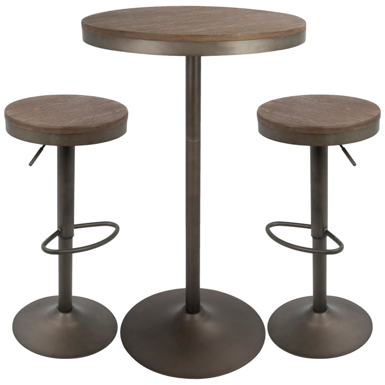 Lumisource Dakota Industrial Farmhouse Table With 2 Bar Stools, Antique/Brown