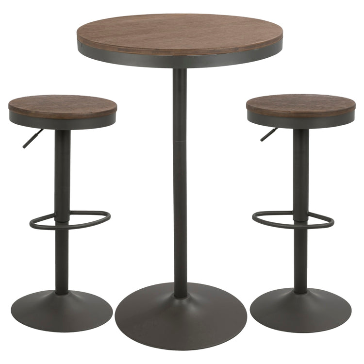 Lumisource Dakota Industrial Farmhouse Table With 2 Bar Stools, Gray/Brown