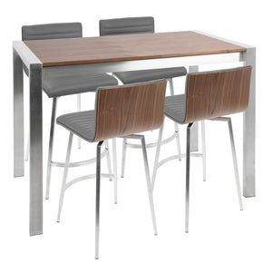 Lumisource Mason Contemporary Counter Table With 4 Counter Stools, Stainless Steel/Walnut/Gray