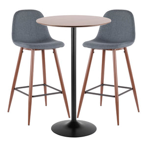 LumiSource Pebble Mid-Century Modern Table With 2 Chairs, Black/Walnut/Blue
