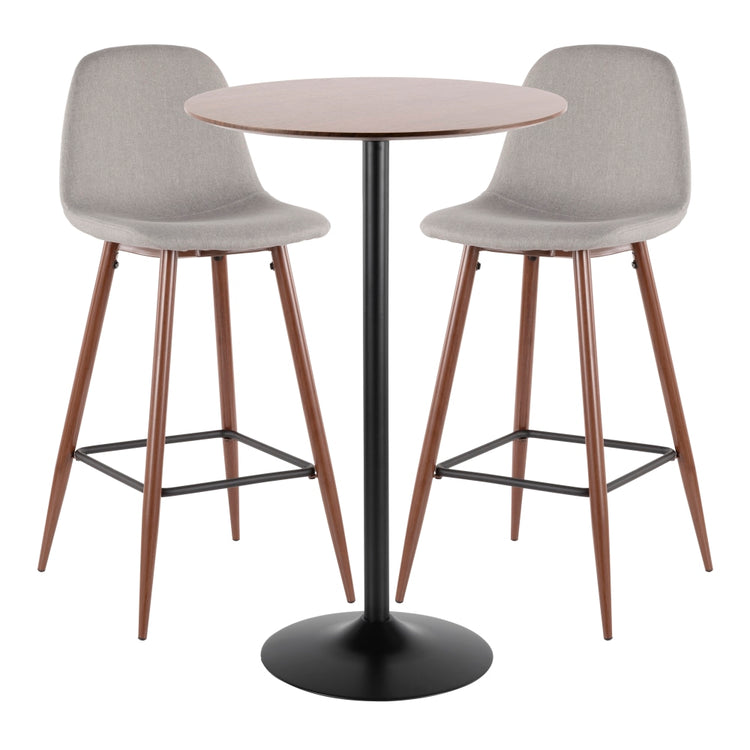 LumiSource Pebble Mid-Century Modern Table With 2 Chairs, Black/Walnut/Light Gray
