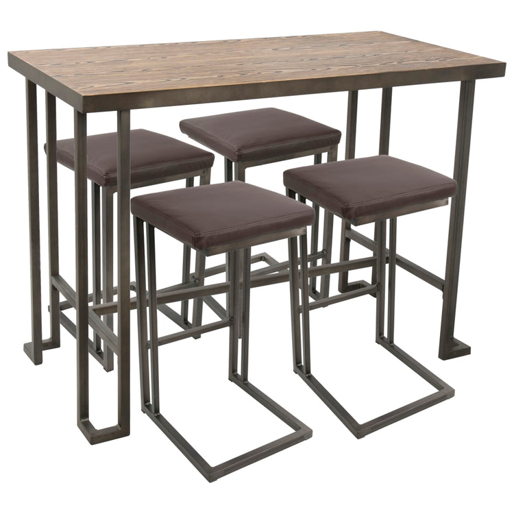 Lumisource Roman Industrial Counter-Height Table With 4 Stools, Antique/Brown