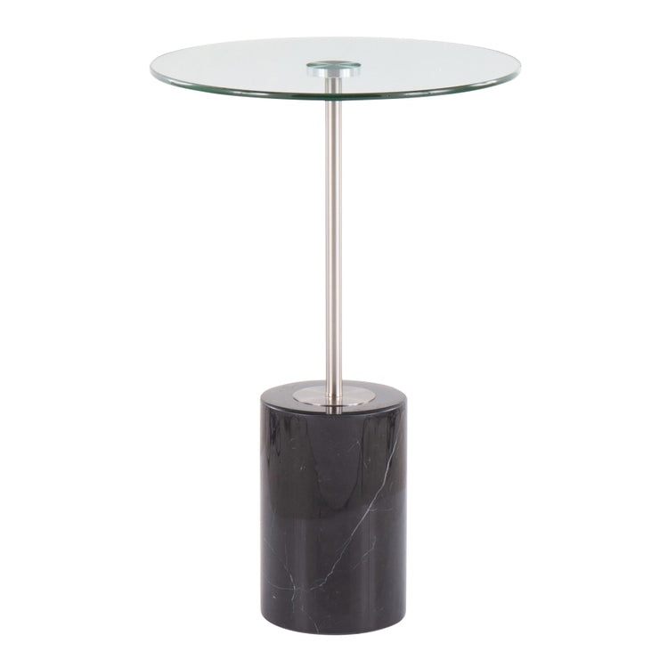 LumiSource Symbol Side Table, 23-1/2inH x 15-3/4inW x 15-3/4inD, Clear/Black Marble/Nickel