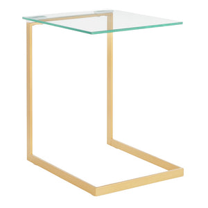 Spruce up your sitting area with the handsome LumiSource Zenn End Table. Its slim metal base is C-shaped to slide under a couch or chair to get closer as a quick work surface. The beautiful tempered glass top accommodates plants, lamps, photos and other décor items.