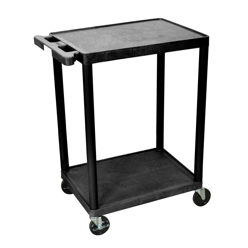 Luxor 2-Shelf Plastic Utility Cart, 33 1/2inH x 24inW x 18inD, Black