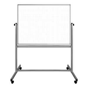 Luxor Ghost Grid Double-Sided Magnetic Mobile Dry-Erase Whiteboard, 36in x 48in, Aluminum Frame With Silver Finish
