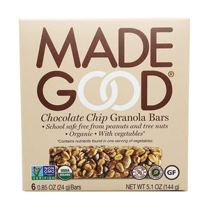 Made Good Organic Granola Bars, Chocolate Chip, 0.85 Oz, 6 Bars Per Box, Pack Of 6 Boxes