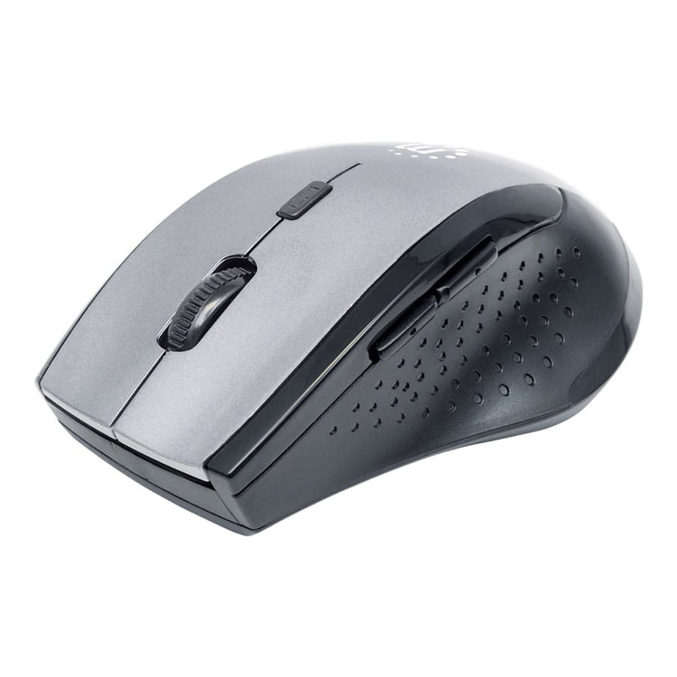 Manhattan Curve Wireless Mouse, Grey/Black, Adjustable DPI (800, 1200 or 1600dpi), 2.4Ghz (up to 10m), USB, Optical, Five Button with Scroll Wheel, USB micro receiver, 2x AAA batteries (included), Low friction base, Three Year Warranty, Blister