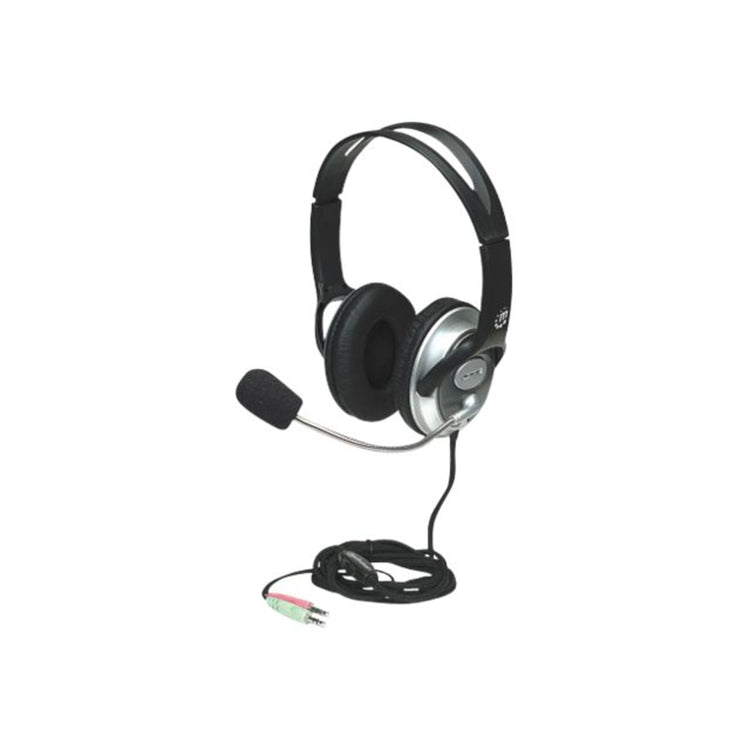 Manhattan Stereo Over-Ear Headset (3.5mm) (Clearance Pricing), Microphone Boom (padded), Adjustable Steel Headband, In-Line Volume Control, Ear Cushions, Std 2x 3.5mm stereo jack/plug for audio/mic use, cable 2.5m, 3 Year Warranty - Headset