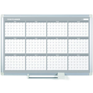 MasterVision 36in 12-month Calendar Planning Board - Monthly, Yearly - 12 Month - White - Aluminum - 24in Height x 36in Width - Magnetic, Dry Erase Surface, Durable, Reference Calendar, Accessory Tray, Scratch Resistant, Ghost Resistant - 1 Each