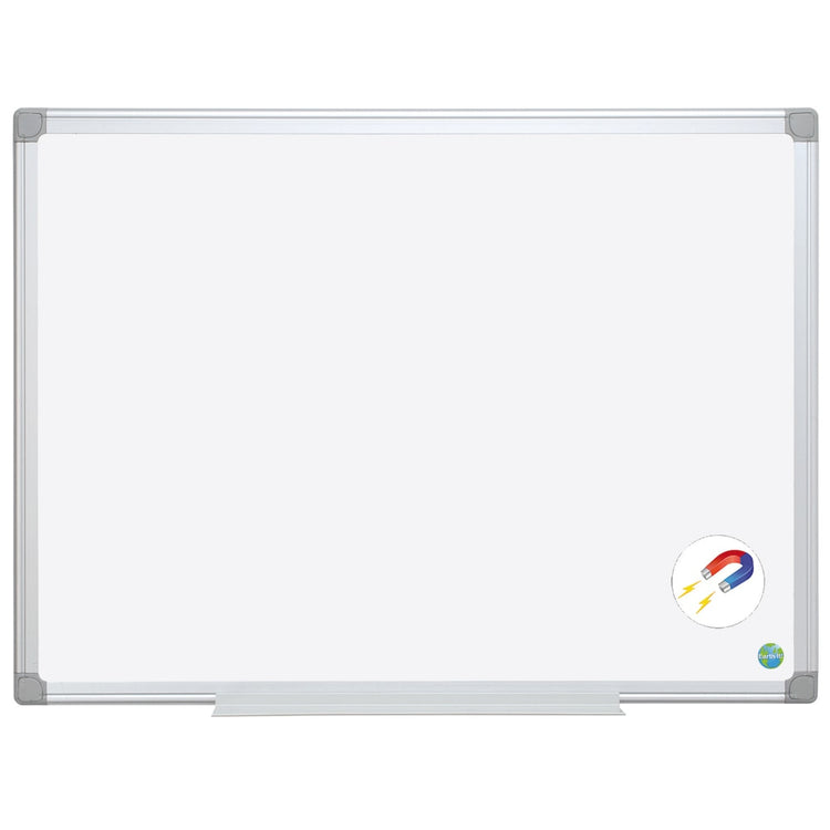 Get a sustainable solution for your conference room needs with this MasterVision Earth Gold Ultra magnetic dry-erase board. Made to handle frequent use, this whiteboard is ideal for brainstorming and easily handles magnetic markers, keeping them in place. A snap-on tray offers space to put additional markers and erasers. This MasterVision Earth Gold Ultra magnetic dry-erase board can be mounted vertically or horizontally for versatile placement.