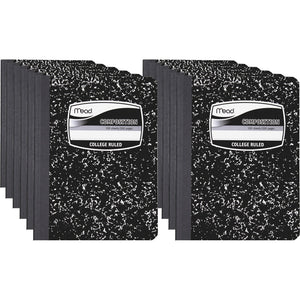 Take notes during lectures with this Mead 9.75 x 7.5-inch composition book. Featuring double sides, this composition book lets you capture every detail, while the college ruling provides ample writing space. The black marble cover contains your basic classroom tables, including multiplication and conversion tables, and lays flat on any surface for smooth note-taking. This Mead 9.75 x 7.5-inch composition book features sewn binding to secure your pages.