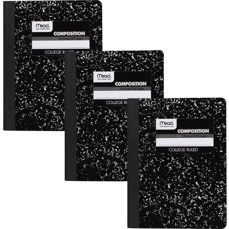 Mead Composition Notebooks, 9 3/4in x 7 1/2in, College Ruled, 100 Sheets, Black Marble, Pack Of 3