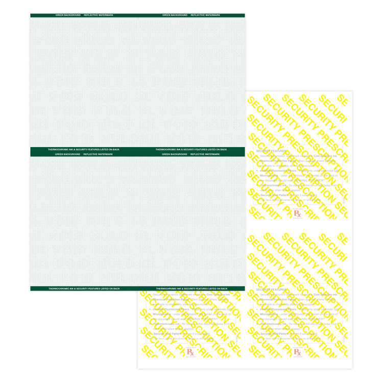 Medicaid-Compliant High-Security Perforated Laser Prescription Forms, 1/4-Sheet, 4-Up, 8-1/2in x 11in, Green, Pack Of 5,000 Sheets