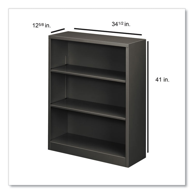 Metal Bookcase, Three-Shelf, 34.5w x 12.63d x 41h, Charcoal