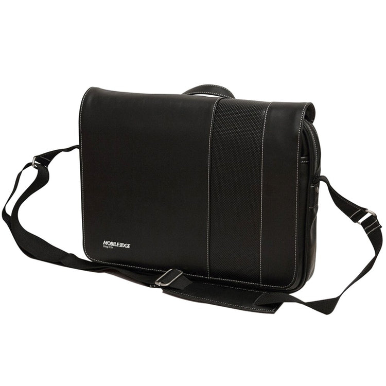 Mobile Edge Slimline Carrying Case (Messenger) for 14.1in Apple iPad Ultrabook - Black, White - Koskin Leather Body - Shoulder Strap - 11.6in Height x 15in Width x 3in Depth