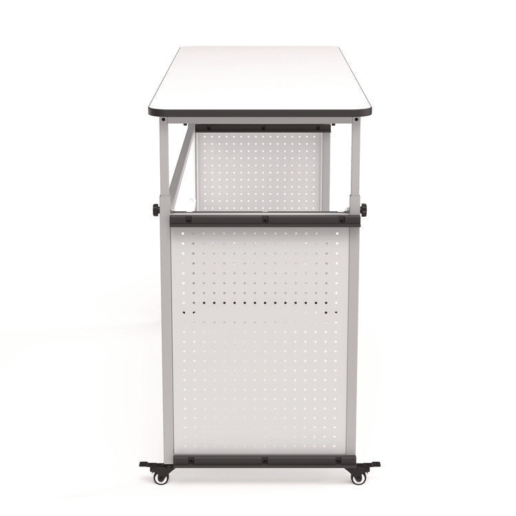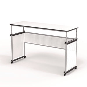 The teacher who stands in front of a chalkboard all day is a relic of the past. Today's educators lead engaging, hands-on activities where students learn by doing, making, and exploring the limits of their imaginations. Recognizing how much instruction has evolved, we created Luxor's Modular Teacher Desk to meet modern classroom needs. Designed primarily as a teacher table, it features a multipurpose design that also makes it an excellent choice as a science lab table or training table. Highlights include a chemical-resistant top, tool-free adjustable height, a modesty panel, and multiple built-in pegboards. Integrated connection rails, meanwhile, make it easy to connect compatible Luxor MBS-Series modular storage cabinets and bookshelves to create custom classroom solutions. Full-swivel, lockable casters provide easy mobility.