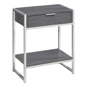 Monarch Specialties 1-Drawer Rectangle Side Table With Shelf, Gray/Chrome