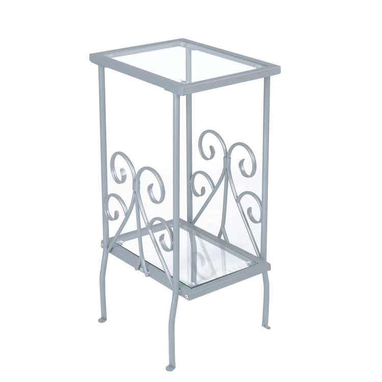 The tempered glass top on this accent table creates an elegant, contemporary look that suits just about any room. Decorative scrolling adds a stylish touch.