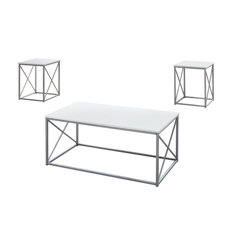 Monarch Specialties Accent End Table, Rectangular, White/Silver