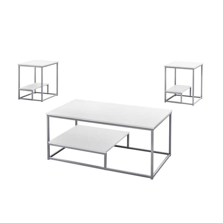 Monarch Specialties Coffee Table With Two 18inW Square End Tables, White/Silver