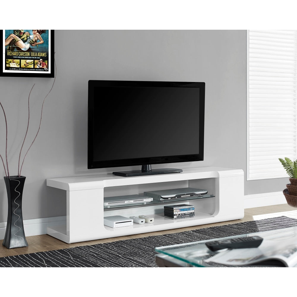 Monarch Specialties Glossy TV Stand For TVs Up To 60in, White